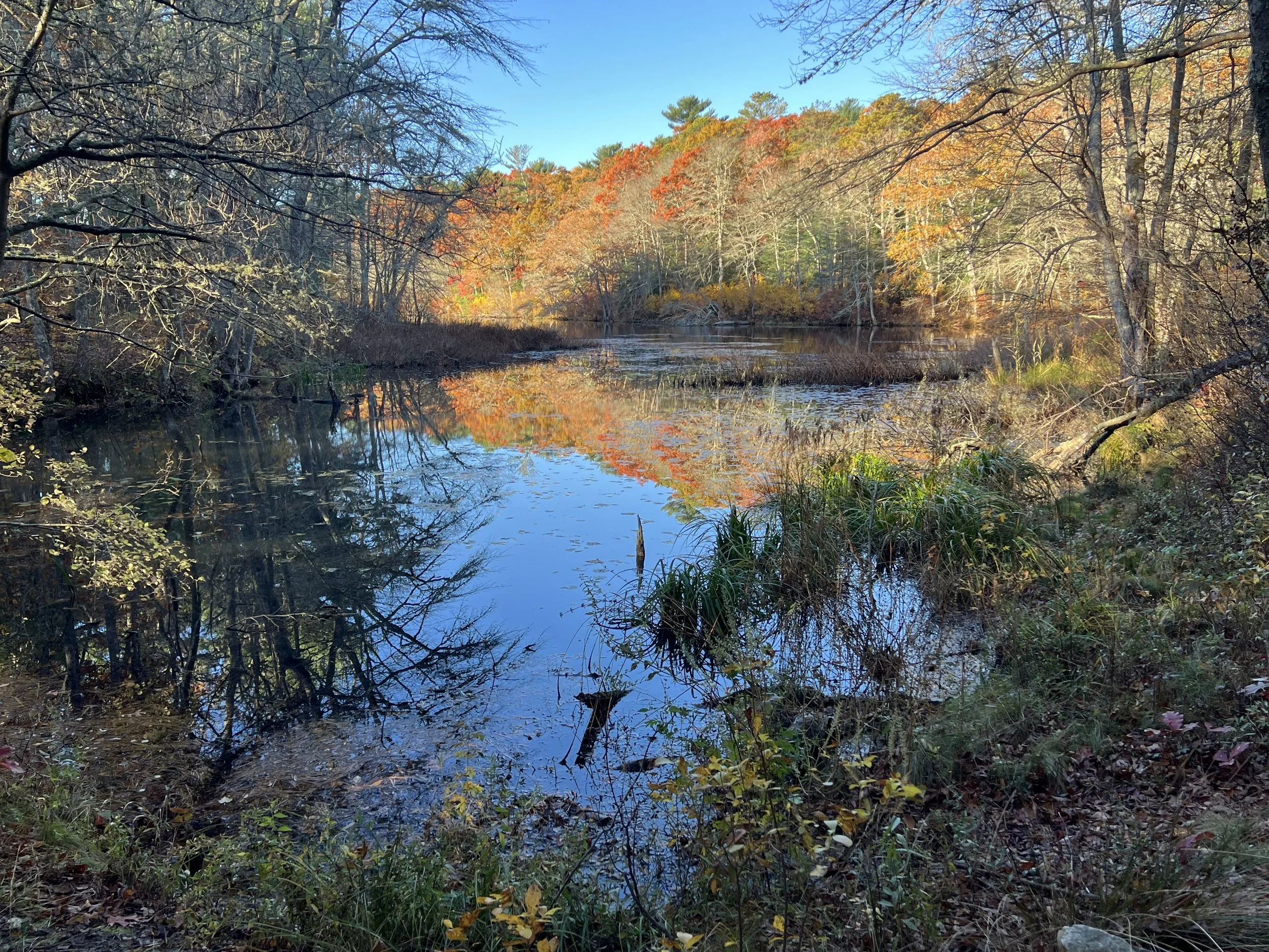 Remnants of the spring-fed Trout Pond east of Pine Tree Corners, part of Farley’s 1930s hatchery system that supplied fingerlings to the Mashpee River.