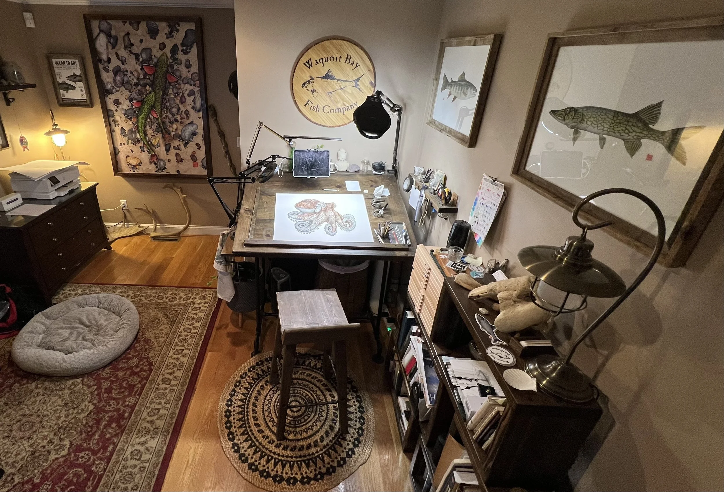 The Waquoit Bay Fish Company offers nature-inspired fine art captured with stunning realism by me, Mike Palmer - a local Cape Cod artist and scientist. The company's primary focus is fish art, which I create based on my firsthand observations from decades of fisheries science and fishing experience. Through my art, I connect people with nature and place by bringing the outside in.